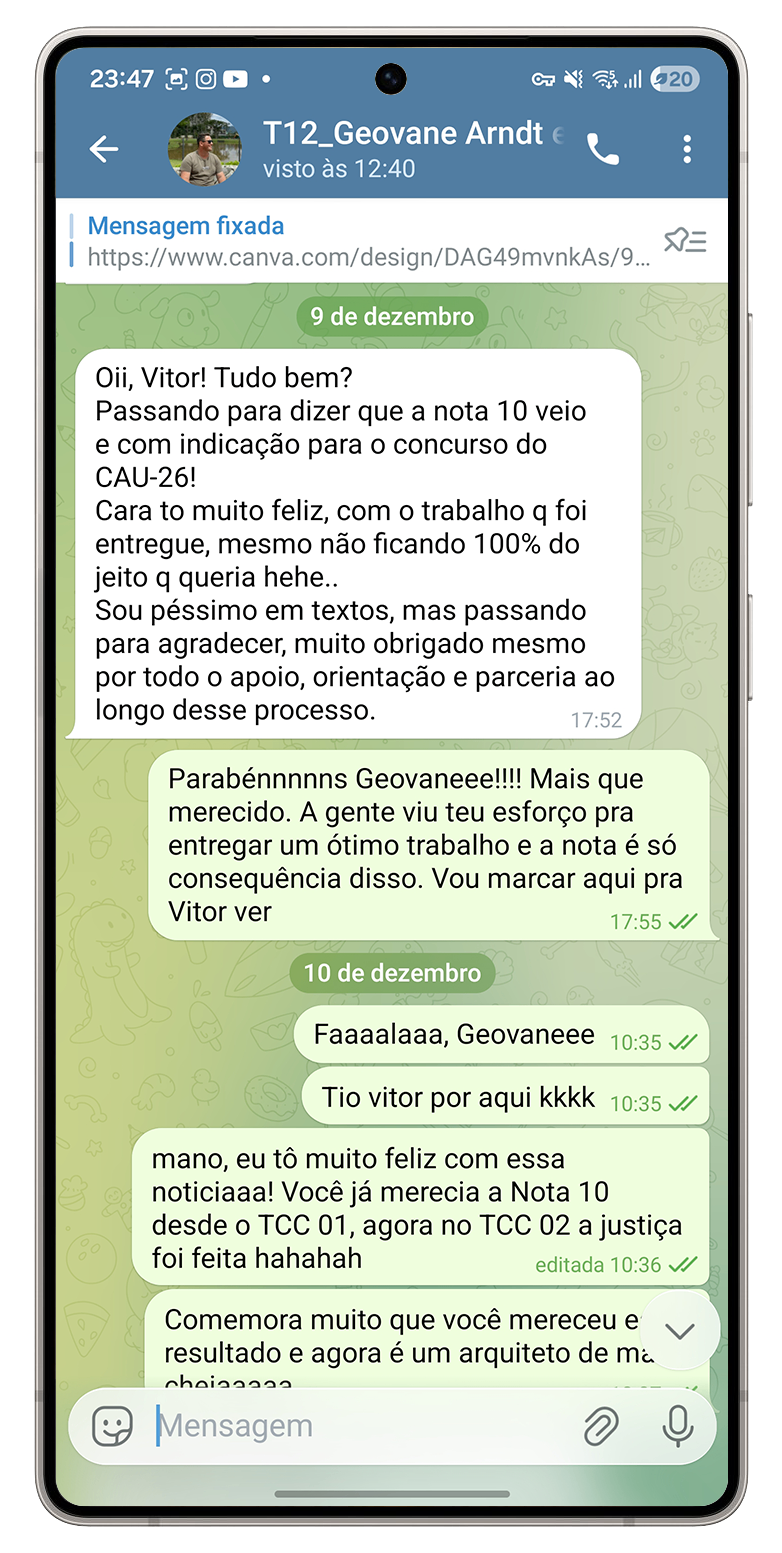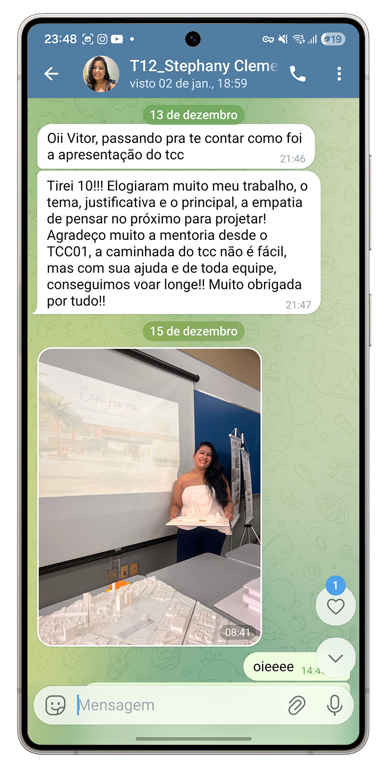 Desde então, Vitor compartilha seu método de desenvolvimento projetual, representação gráfica e diagramação criativa juntamente com treinamentos e mentorias. Hoje o TCC Nota 10 conta com uma equipe com 08 profissionais e alunos espalhados pelo Brasil inteiro.